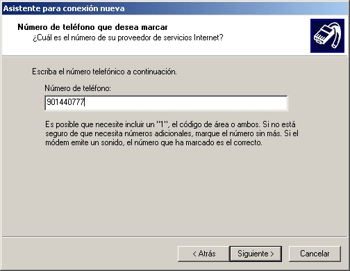 - En la siguiente pantalla, escriba el número telefónico: 901440777 y luego presione el botón Siguiente.