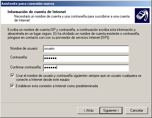 - En la siguiente pantalla del asistente, ingrese los datos de su cuenta. A continuación haga click en el botón: Siguiente.