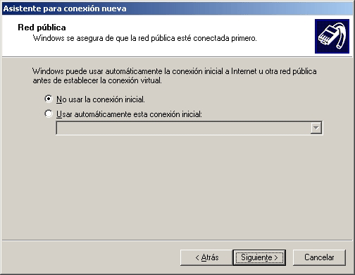 - Seleccione la opción No usar la conexión inicial, luego presione el botón Siguiente.